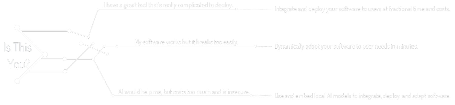 Our core interface with all supporting technology to build your workbench of computer tools, define your decision objectives, integrate your tools using those objectives, and deploy your solutions as desired.